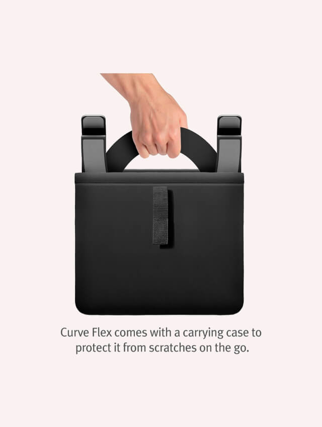 Curve Flex provides the ultimate flexibility to adjust your laptop base from 2″ to 11″ off your desk. Relieve neck and shoulder strain by positioning your screen at eye level for optimal posture. Having your screen at eye level also puts your best face forward with the most flattering angle for video conferencing.